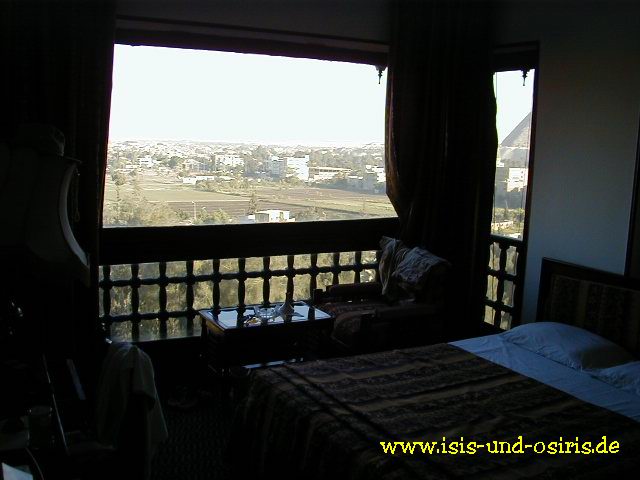 Hier mal ein Blick in das Zimmer des Delta Pyramid. Am Seitenfenster kann man noch ein Stück von der Pyramide sehen.