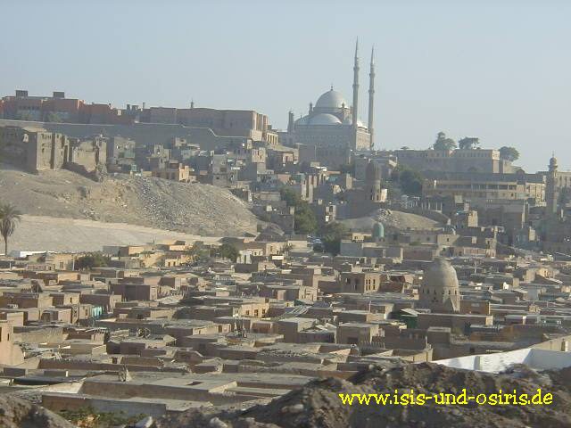 Gleich nach dem Eingang in den Gebetsraum befindet sich ein kleiner Kuppelraum mit dem Grab von Mohamed Ali, dem einstmaligen Stadthalter von El-Qahira. Die Zitadelle selbst wurde von Saladin in 30-jähriger Bauzeit erstellt . Sie ist eine gewaltige Festungsanlage. Allerdings wurden für den Bau auch unzählige Steine der Großen Pyramiden von Kairo benutzt und auch Steinquader der alten Reichsstadt Memphis wurden in der Anlage verbaut, sodaß sie auch die vierte Pyramide von Giza heißt.