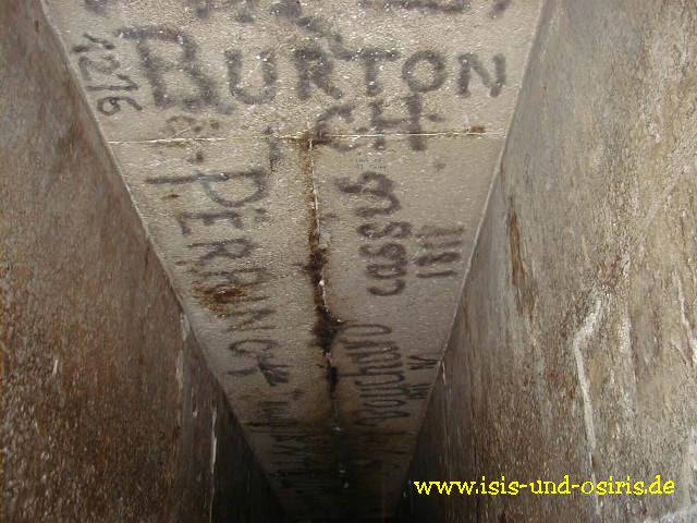 In diesem Gang zur zweiten Kammer findet man sehr viele Graffiti von Reisenden aus den vergangenen Jahrhunderten. Diese Unsitte hatten sie also auch schon in der Vergangenheit. Wie man hier gut sehen kann: 1811 und sogar 1279. Es sind noch viele Graffiti zu sehen die wir aber alle gar nicht auf das Bild bekommen haben.