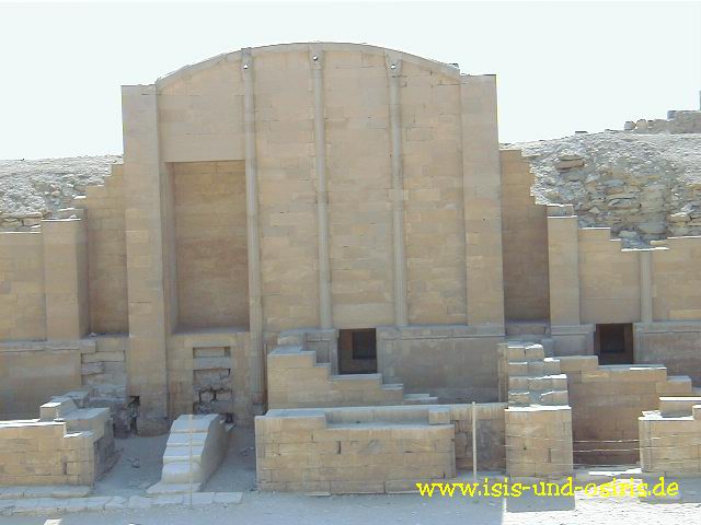 Jede der ursprünglich 13 Kapellen hatte ein kleines Sanktuarium, an dessen Seiten Scheintüren zu sehen sind. Diese Kapelle hat noch eine Besonderheit, denn an der Außenseite der Kapelle ist eine Nische zu sehen die über eine Treppe erreichbar ist, in der wahrscheinlich eine Statue des Königs gestanden hat.