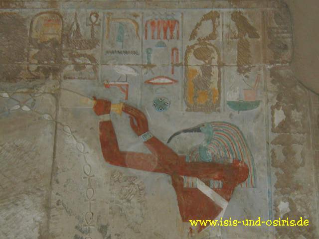 Die Reste der Kartusche der Hatschepsut kann man noch deutlich sehen, auch die entfernten Hieroglyphen sind so sauber herausgemeißelt, daß es kein Problem ist, sie immer noch gut deuten zu können.