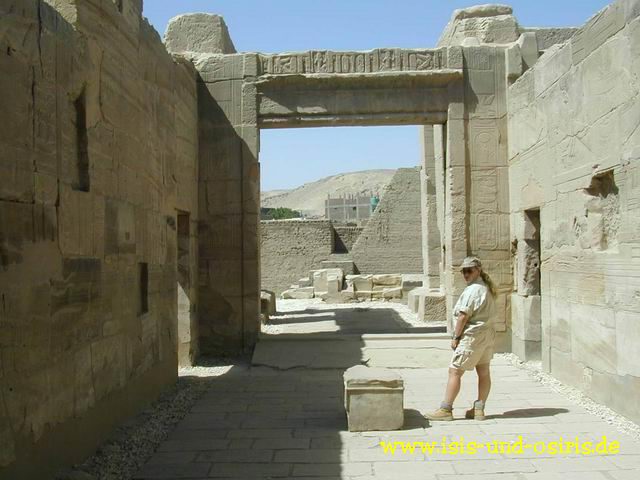 Nun haben wir des "Sanktuarium", auch Barkenraum genannt, erreicht. Auf diesem Sockel wurde die Barke des Amun bei der Prozession abgesetzt.