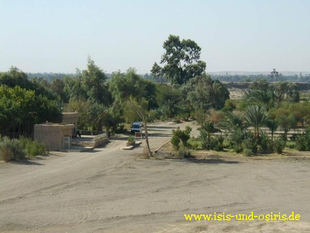 An den Gräbern oben angekommen hat man einen herrlichen Überblick über das Eingangsareal. Hinter den Bäumen kann man die Stadtmauer von el-Kab erkennen. Die Stadt Elkab (bei den Griechen Eileithyiaspolis) liegt auf dem Ostufer des Nils gegenüber der Falkenstadt Hierakonpolis (Nechen) im 3. oberägyptische Gau und war das alte Necheb. Die Stadt wurde auch "Festung" genannt nach der Stadt „Nhn“ (Hierakonpolis), die zunächst die Metropole bildete. In ptolemäischer Zeit trat die Stadt Esna, die vorher eine Unterverwaltung des Stadtgebiets von Elkab war, als Verwaltungszentrum an die Stelle von Elkab.