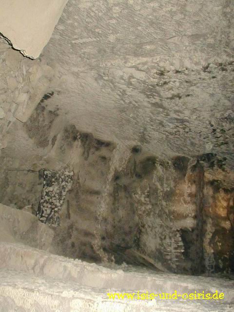 Diese Treppe führt in einen Gang der aber nur knapp zwei Meter in den Berg führt. Sie sollte bestimmt mal zur unterirdischen Grabkammer führen. Aber da dieses Grab schon in einem sehr frühen Stadium aufgegeben wurde hat man die Grabkammer erst gar nicht begonnen.
