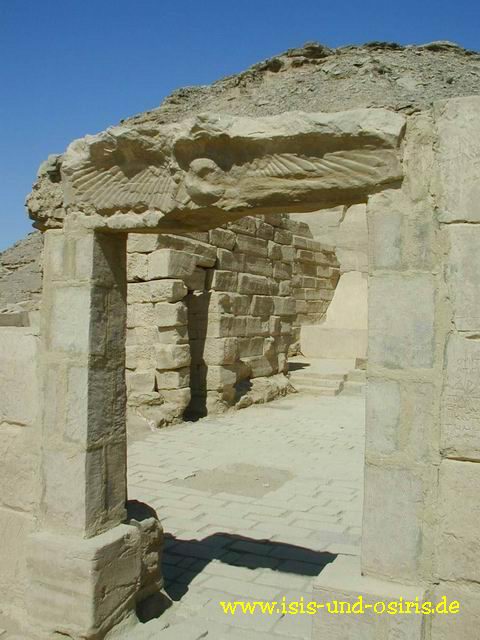 An diesem Architrav ist noch gut die geflügelte Sonnenscheibe zu erkennen.