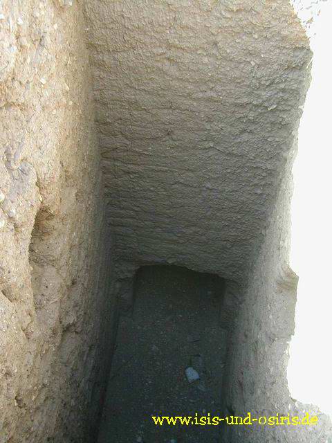 Vom Oberbau (einem ummauerten Hof mit Eingangspylon) ist nichts mehr vorhanden. Mittels dieses senkrechten Schachtes gelangt man in die unterirdische Grabkammer. Für was die zwei Öffnungen links und rechts sind konnten wir leider nicht in Erfahrung bringen.