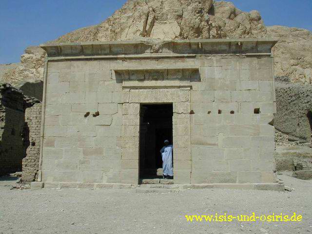 Vom Vorhof aus kommen wir in den eigentlichen Tempel der aus einem Vestibül und drei Kapellen besteht. Die mittlere Kapelle ist Hathor und Maat geweiht, die rechte Amun-Re-Osiris und die linke ist die Kapelle des Amun-Sokaris-Osiris.
