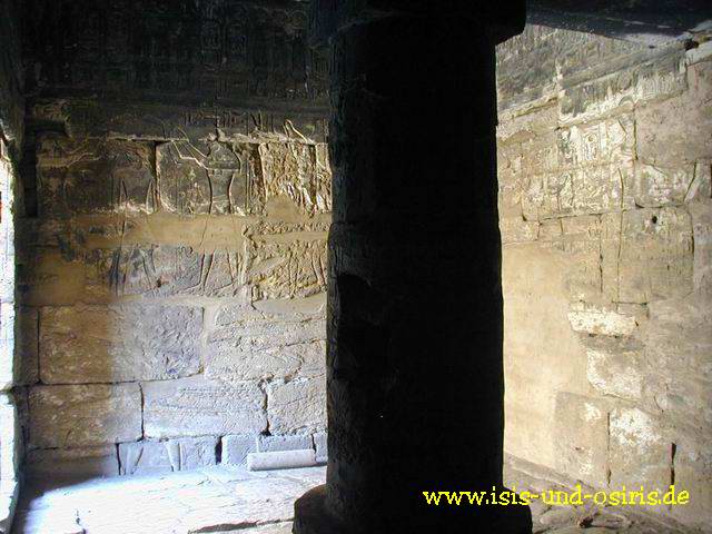 Hier befinden wir uns nun in einem der hinteren Kulträume. Dieser hier war Osiris geweiht. In späteren Zeiten, unter dem Priesterkönig Herihor, sollen die Räume auch für das Orakel genutzt worden sein.