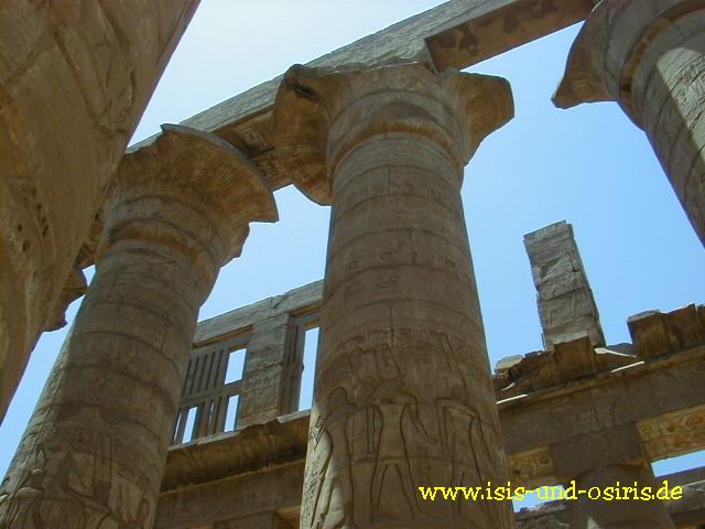 Eine Säule mit geöffnetem Papyruskapitell im Großen Säulensaal