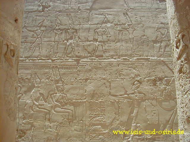 Einen kleiner Ausschnitt der gemeißelten Geschichte in den Wänden des Tempels