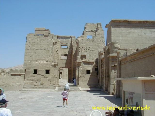Das Wachportal und das Südportal oder auch Königlicher Pavillon mit den üblichen Kampf- und Opferszenen in Medinet Habu (Thutmosis I.)
