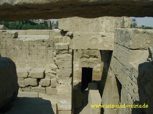 Vom Dach des Chons Tempels aus kann man durch die vielen Löcher in den Wänden in die rechte Nebenkammer schauen.