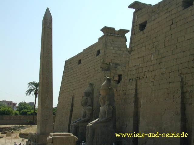 Der große Eingans-Pylon von Ramses II. mit leider nur noch einem Obelisken - der andere ist an Frankreich verschenkt worden und steht in Paris auf dem "Place de la Concorde", im Tausch gegen ein Geschenk ... die Uhr in der Zitadelle in Kairo