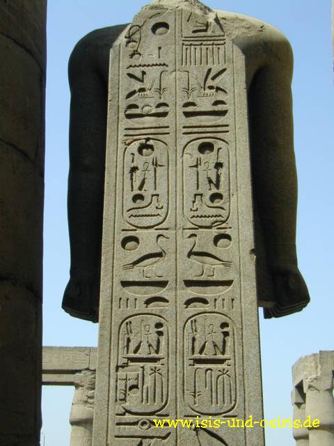 Was sagen uns die Hieroglyphen ... Wie Ra ist er der König von Ober- und Unterägypten - Herr der Beiden Länder - Herscher der Weltordnung - Auserwählter des Ra (Thronname) "User-maat-re Setep-en-re", Sohn des Ra - Herr der Erscheinungen - Ra hat ihn geboren - Geliebter von Amun und Ra (Geburtsname) "Ra-messes"