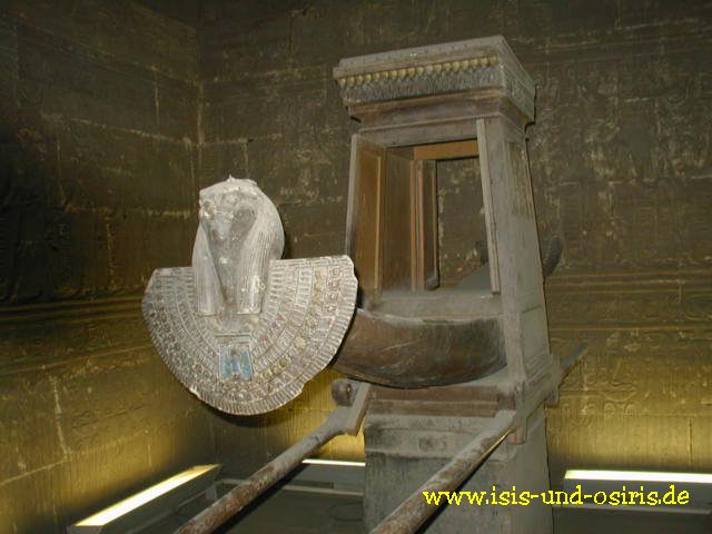 Die Sonnenbarke von Edfu als Nachbau - nachdem das Original im Britischen Museum ist. Die in Edfu gefundene Sonnenbarke ist eine der wenigen, die überhaupt gefunden wurden