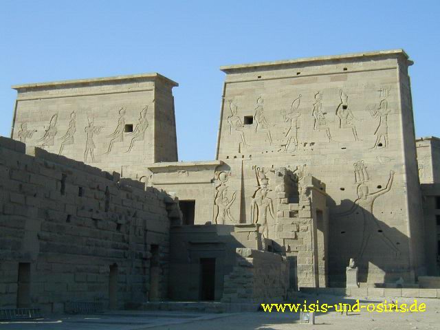 Der erste Pylon des Isis-Tempels ist 18 m hoch und 45 m breit