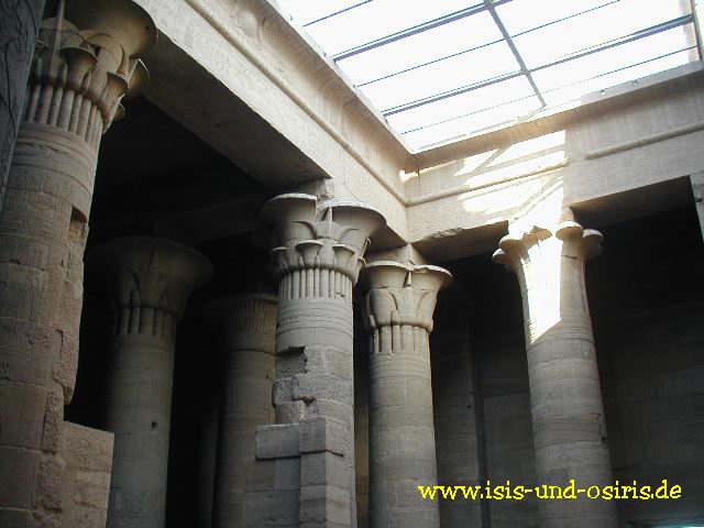 In dieser Säulenhalle erkennt man noch schwach die Farben an dem oberen Teil der Kapitäle