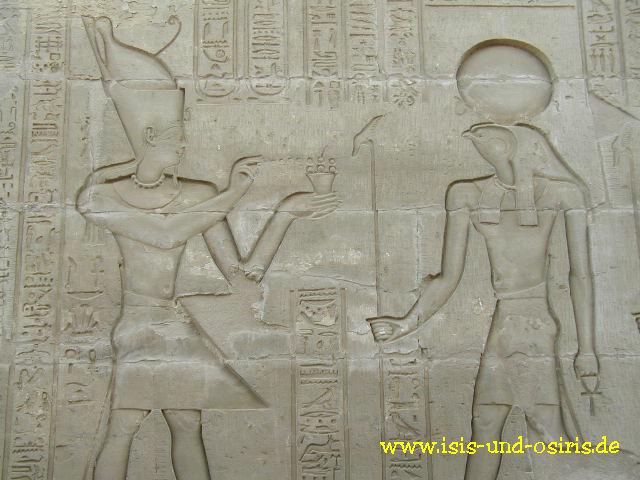Einer der Pharaonen aus ptolomäischer Zeit bei der Opferdarbringung