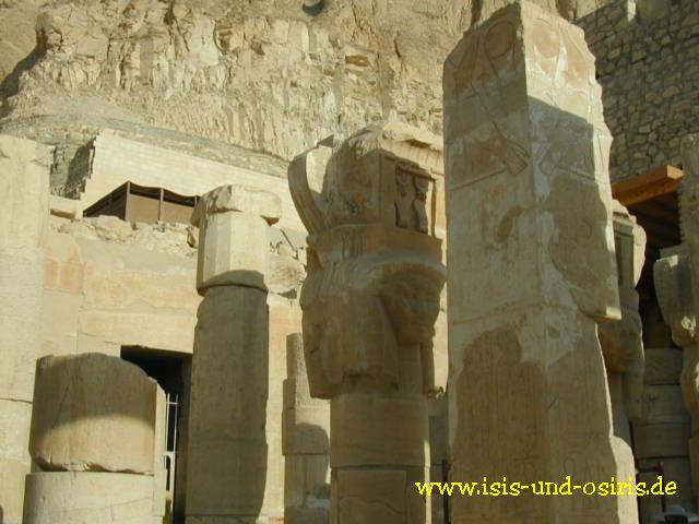 Die Kapelle der Hathor mit den Pfeilern der Göttin Hathor dargestellt mit Kuhohren und einem Sistrum