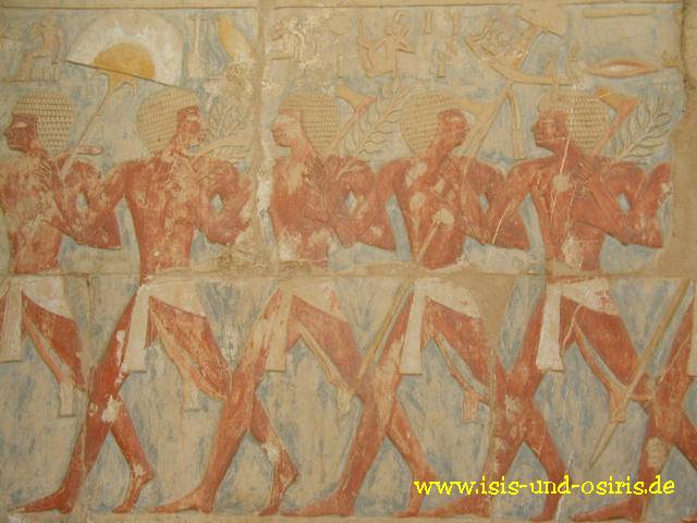 Die Abbildung von einigen Soldaten an der Ostwand der oberen Terrasse