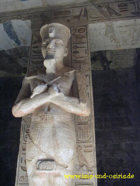 Ramses II. in osirischer Haltung mit den Attributen des Pharao - Krummstab und Geisel