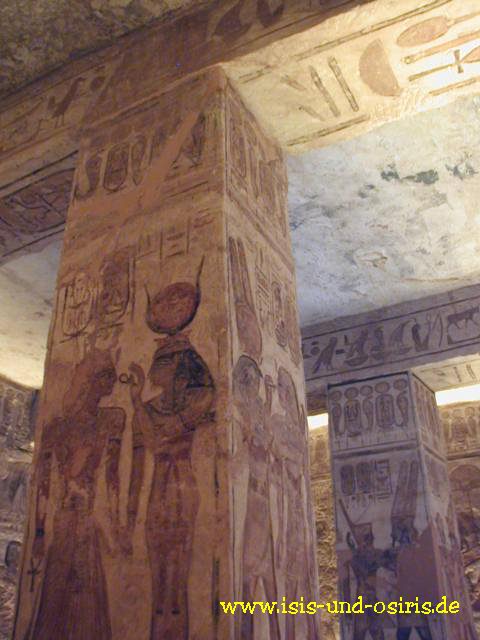 Wahrscheinlich Isis, die mit dem "Ankh" das ewige Leben an Ramses verteilt