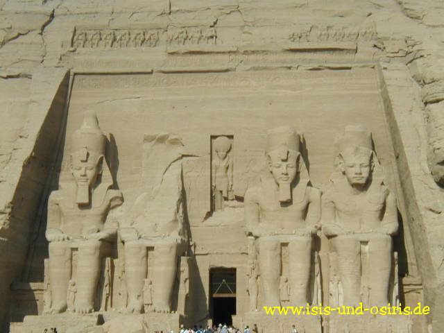 Über den Statuen sieht man die 22 betenden Paviane (Hamadryaden) die 2,5 m hoch sind