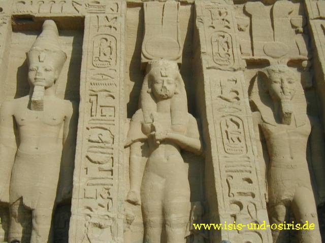 Kein anderer Pharao hat seiner Großen Königlichen Gemahlin einen Tempel errichtet. Und noch eine Besonderheit sieht man nur hier: Nefertari ist gleichgroß wie Ramses dargestellt (10 m)